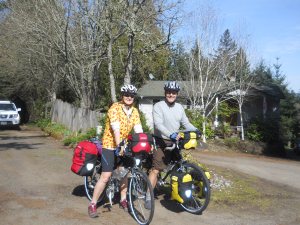 The morning brought colder temperatures with a partly cloudy, windy day. Our ride into Banks was cold enough that I wore my rain gear, wool hats and booties to keep my feet warm. My feet were so cold that I ended up changing my tennis shoes out for my fleece lined Crocs with Gore-Tex socks covered by wool socks and hand warmers on the toes. Finally my feet were warm! Our ride home took us into Forest Grove where we took a food break at the McMenamins Grand Lodge enjoying sweet potato fries and Ruby ale. It was hard to get back on the bike as the warmth of the sun and good food was lulling us into a state of relaxation. However, home, our dogs and the Jacuzzi called. Our last 20 miles were slow as we pedaled with our tired legs directly into the wind. We decided to tackle the final mile-long hill to home – did you know you can ride a bike up a hill slower than walking speed? (We had put mom on alert before we left – with the possibility of meeting us at the school a few miles from home and taking our gear up).