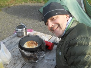 Returning via Hwy 47 into Vernonia we decided to settle in for the night at the city campground Anderson Park, nestled in right on the banks of the Nehalem river. A reasonably kept camp ground with all the amenities, we were thankful for the cover of the common picnic area for shelter from the rain for dinner. We prepared dinner and put up our tent under the picnic cover and then moved everything out to a spot on the riverfront out of the lights of the pavillion that were left on all night. My main issue with the camp ground was the proximity to the town. The gathering groups of teenagers, pit bulls and other characters in trailers and the car that pulled up to a trash can and took out a brown paper bag and then speed off made me feel a bit uneasy. But in the end it was a pleasant stay and the soothing sound of the river soon had us lulled to sleep.
