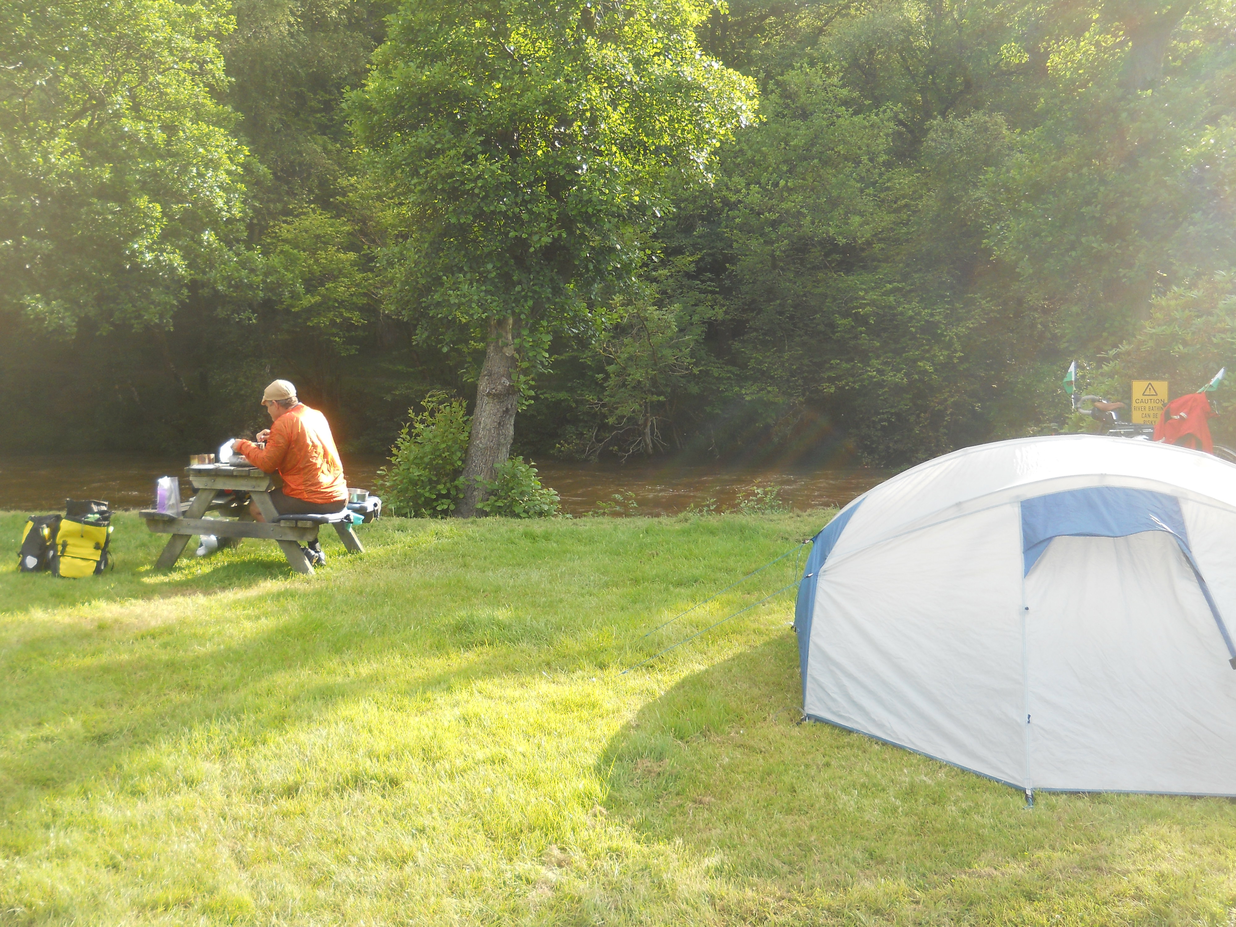 The Wyeside (on the river Wye) campground is more like true camping. They have some amenities- clean hot (lovely) showers, potable water, trash containers and a dishwashing station. The camping field is well maintained and the grass is freshly cut – and super soft to sleep on.