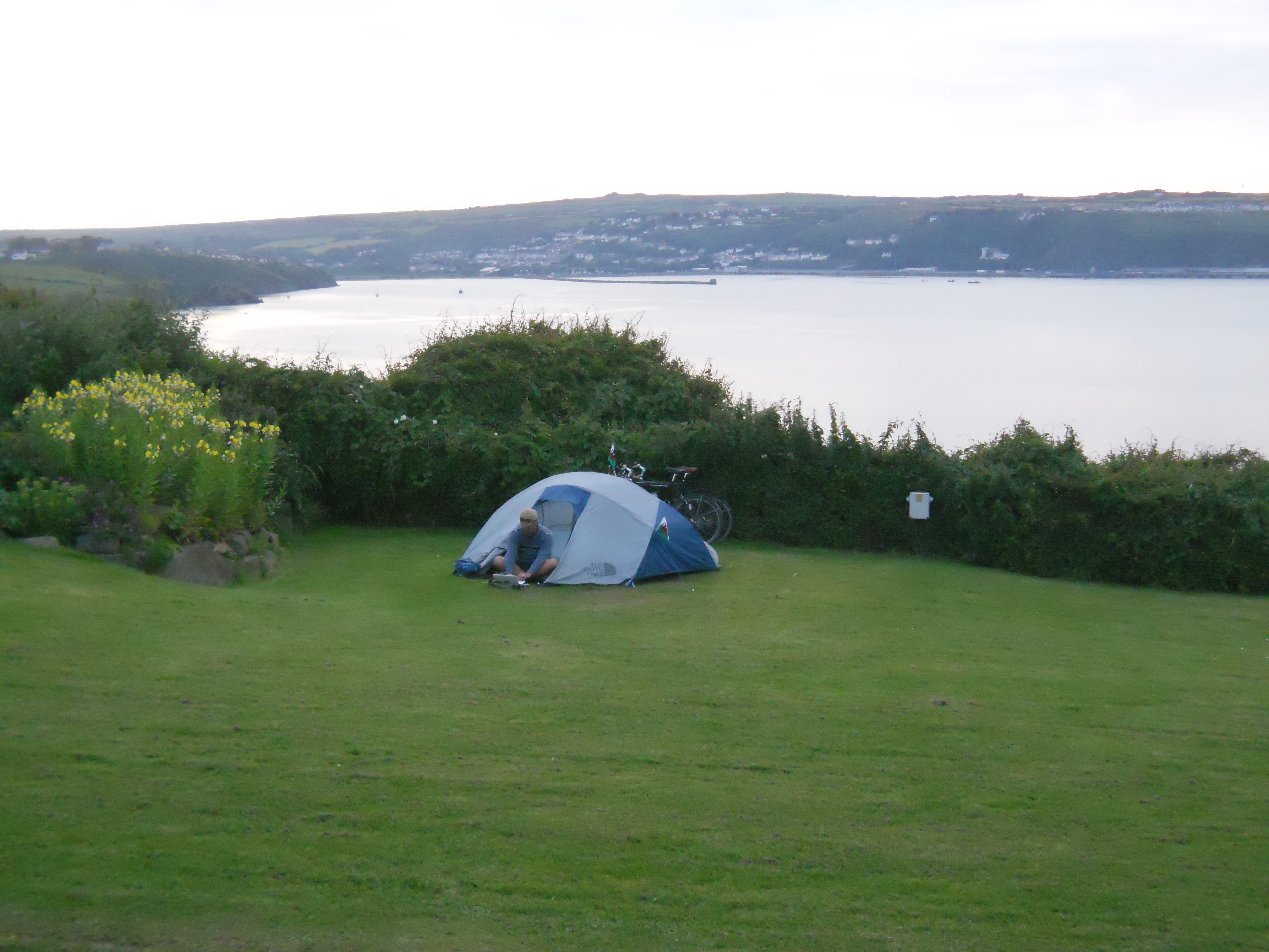 The caravan camping site or Glamping site at Fishguard (Fishguard Bay) was quite beautiful high above the bay. They have dedicated camp sites with full hook ups available- all the amenities – I mean all including a fish and chip truck that showed up on saturday and wednesday evening- a TV lounge, pool table, full service store. This is Glamping.