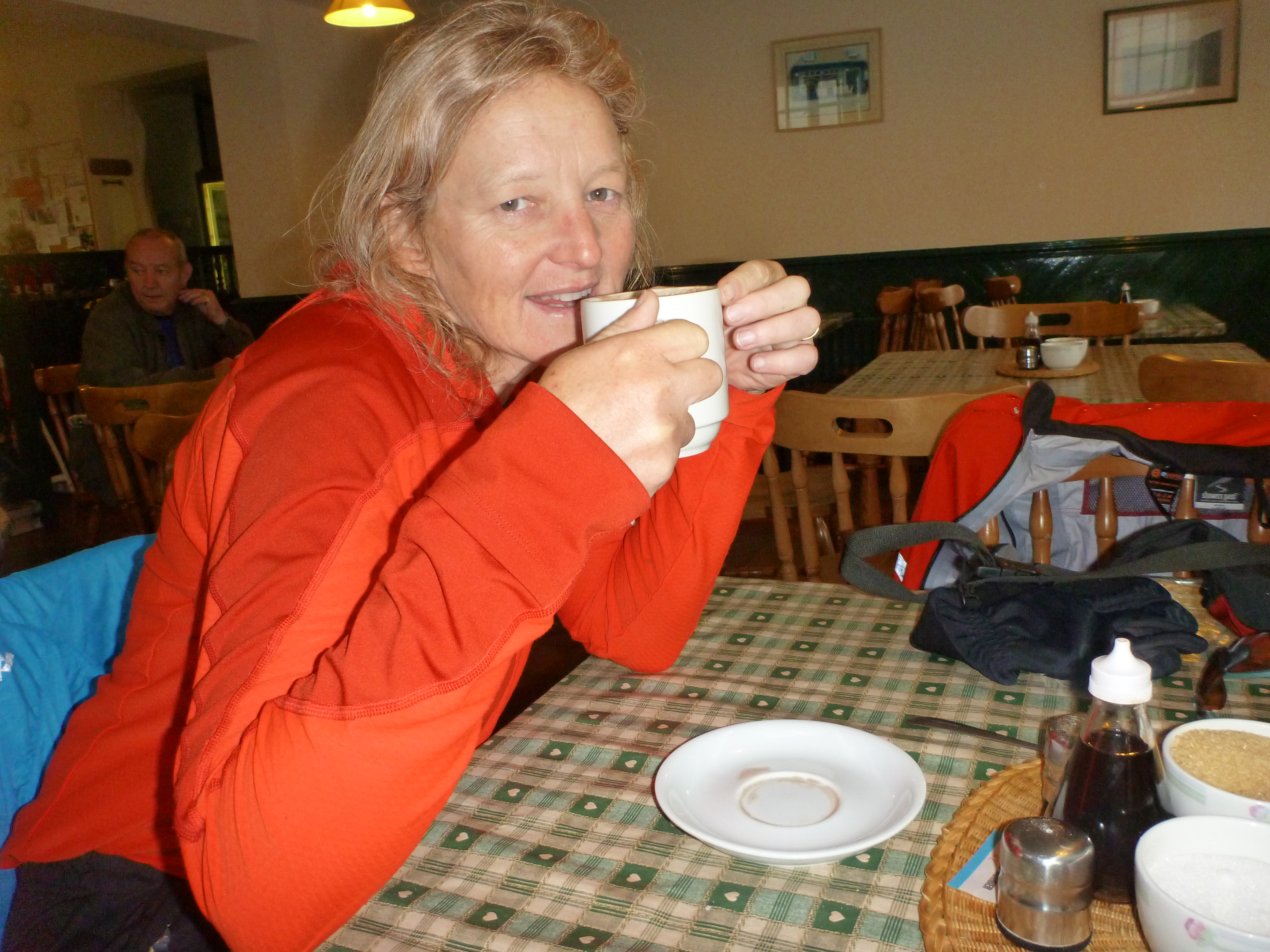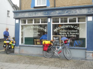 I don’t mind riding in the rain…it is actually kind of refreshing. Our morning ride to Machynlleth had an overall 16 mile climb in a light mist- just enough to keep you cool as you hammered up the beautifully green washed hills to the highest point on the trail. After which the sky opened up and began dumping rain- almost like the sky knew that we were done with our climb. Knowing that our late lunch with hot chocolate was waiting for us at the end of a wicked six mile descent we decided to push on despite the rain. We found that rain drops become painful like little BB’s stinging your face at a threshold of approximately 28.5 MPH. That didn’t stop us from descending without abandon directly into Machynlleth and to our yummy hot chocolate and bread pudding with warm custard. Another fantastically beautiful day in Wales.