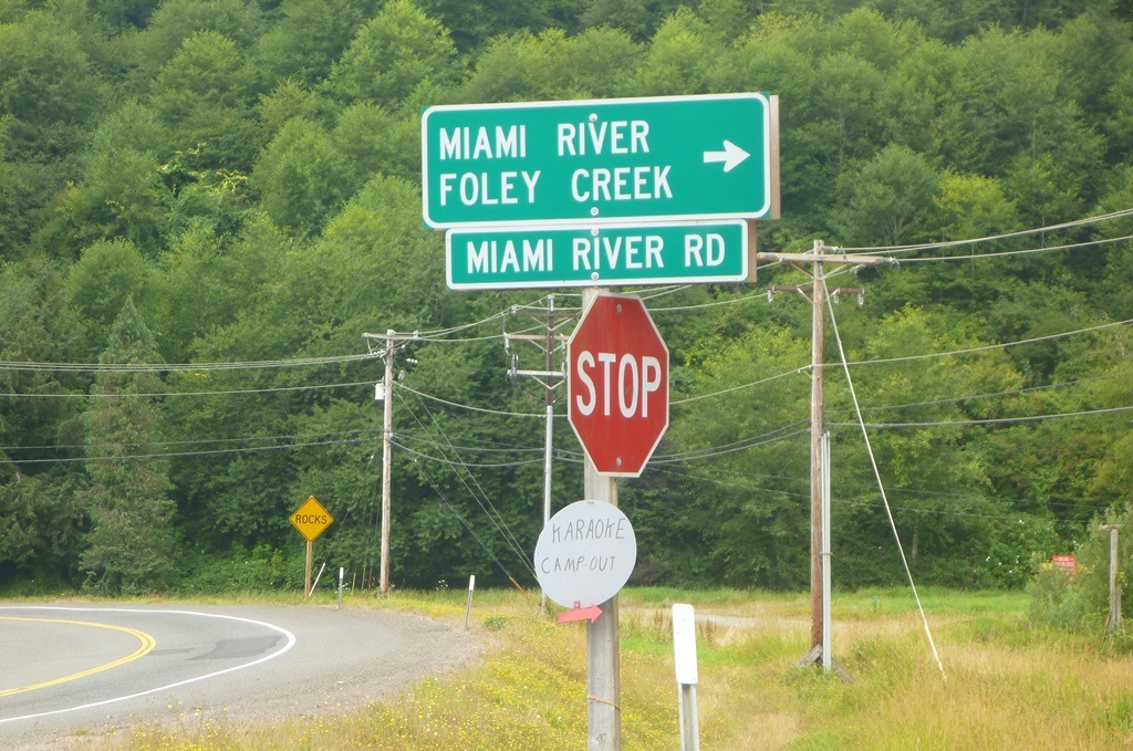 Shortly after passing the old paper mill smokestack, we came to our turn back into the hills. The Miami river is the northern most of the five rivers that end in Tillamook Bay and we’d be following it upstream for a few miles.
