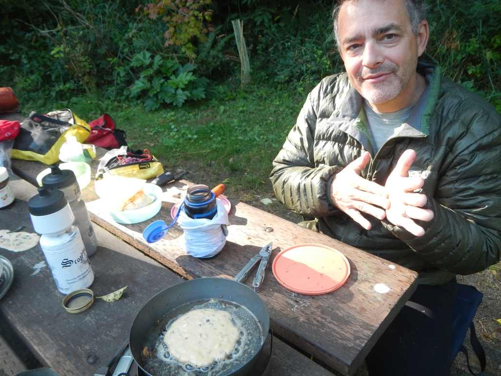 We’ve made pancakes and hundreds of meals on various Whisperlight stoves over the years, but only recently have we begun to experiment with alcohol stoves. Last year during our Wales trip, we brought both types of stoves but only used the Trangia for boiling water. In past trips using the Whisperlight, we’ve taught dozens of people to make pizza, calzones and lots of other tasty, non-processed fresh meals. During each of our upcoming trips, we’ll continue to test and refine new and old gear.
