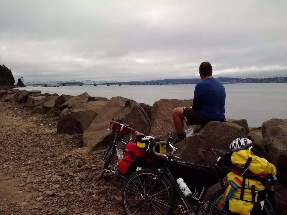 Rolling through the fishing town of Chinook, it seemed like everyone was still asleep. There was almost nobody out??? Around the corner, the bridge appeared. We decided to take a short snack break before crossing.