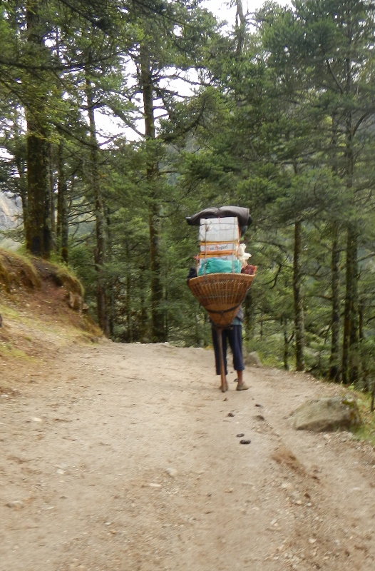 Christine and I started with the observational data. We sat on a strategic wall with her viewing south (observing those who were heading north, towards Namche) and myself viewing north (observing those who were heading south, towards Jiri). At first it was a bit chaotic as the porters were coming at us fast and we were just getting used to our forms. Then we got smart and made a easy to fill table to capture multiple observations on one page. Way less paper shuffling! Christine, with her fantastic data collection and organizational skills, is an observational expert.