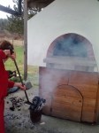 Most of the breads we made were baked in the Valoriani wood fire oven in the back garden. Pat’s fire tending assistant did not show up, so Pat managed the oven herself. Maintaining the oven requires constant attention to ensure the right temperature and consistency of heat throughout. Pat did not miss a beat- she incorporated the fire maintenance into the course- we learned about the oven, how to keep the temperature up and how to cool it down when necessary. Fun!