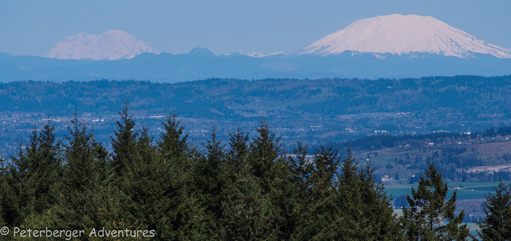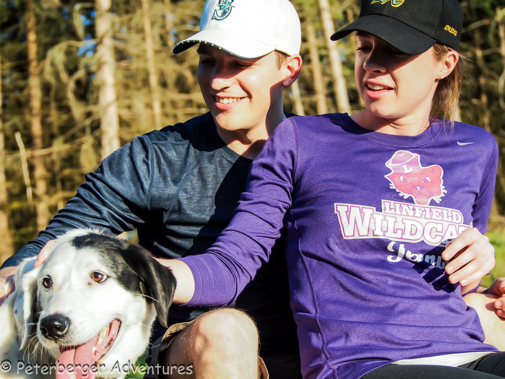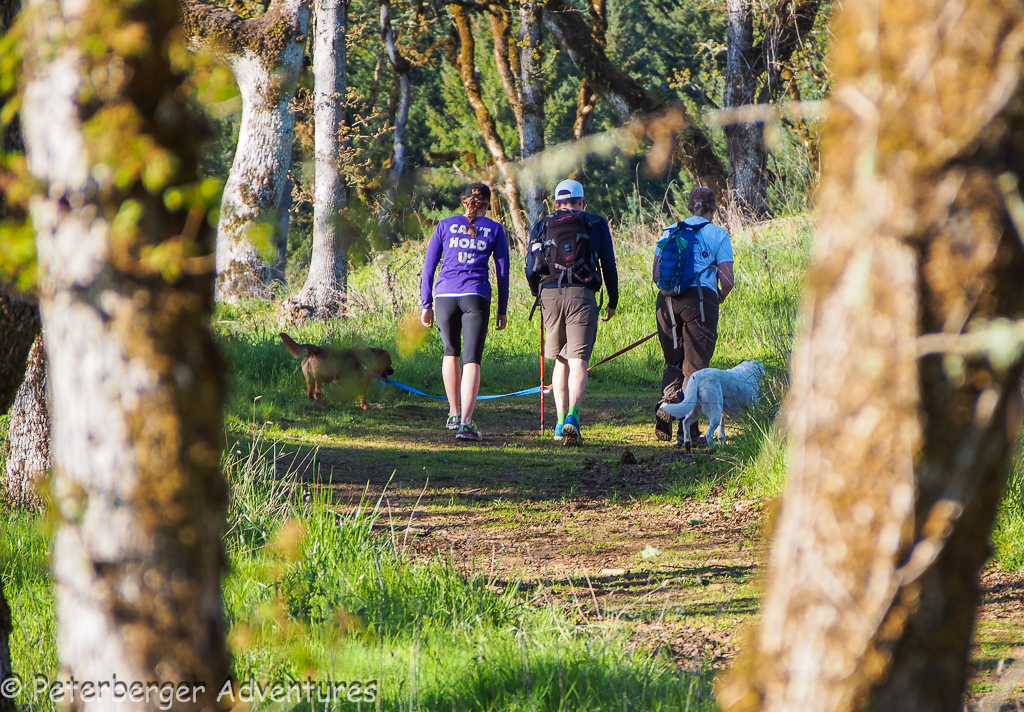 A glorious Oregon spring Sunday – a perfect day for a ride. The volcanoes were out in all their glory. Four of them lined the horizon as a backdrop to a spectacular blue sky. The steep climb was rewarded by the views and the wicked fast downhill. The day was just too beautiful to sit inside- so we ended the day with an Abbey hike with Blake and Caroline and the pups!