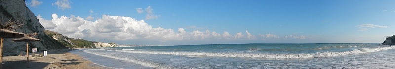 The next day, Monday, we woke with high expectations of more quiet roads and lovely camp sites. We had planned to get through Varna, the most populated area on the Black Sea and Bulgaria’s third largest city, and camp somewhere on the coast just south. We started by taking the beach side boardwalk out of Topola, which was absolutely beautiful. Easy riding, no traffic, scenic coast line under blue skies.
