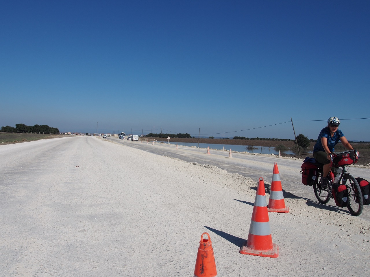 We lazed a bit in the morning, enjoying the sun and free wifi. Once we mobilized, we headed out along the village roads and occasionally, for very short sections, had to ride on the D100 – which at this point was a four lane highway with a very nice shoulder. We decided to head around the peninsula just south west of Buyukcekmece.