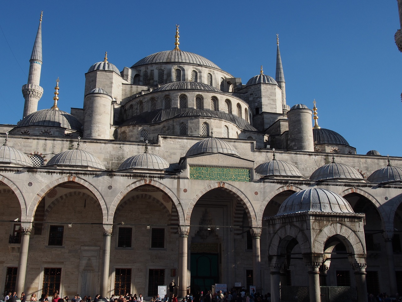 On the south of the Golden Horn there is the area known as the Old City which is part of the Fatih district.  Here is where you find the famous Blue Mosque, the Sofia Mosque and several other significant Mosques, palaces, markets and the Grand Bazaar.  These are just a few of the attractions, there are many more – too many to list.  The Mosques were grand, beautiful, awe-inspiring, old and crowded with tourists from around the world.  We happened to be hanging out between the Blue and Sofia Mosque when the call to prayer began- check out this video for a small sampling and 360 degree view.