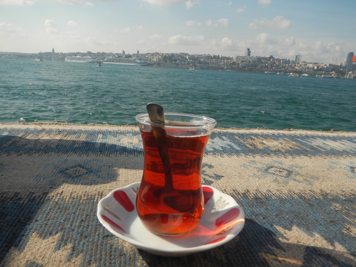 Besides sampling the yummy restaurants in “our” neighborhood (Uskudar), our favorite pastime was strolling down the sea wall towards Kadakoy and stopping at one of the tea kiosks.  There we would sit on the steps of the sea wall on comfy cushions, sipping tea and watching the world go by.  Sitting in the sunshine, watching locals play backgammon, lovers exchange glances and the occasional kiss, children playing with kittens and fishermen catching fish for the day.  Watching the boats from small fishing vessels to huge cruise liners and freight ships navigate one of the busiest waterways in the world was highly entertaining.  Quietly reflecting on our journey and simply enjoying each other’s company is and will always be priceless.