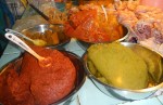 - Red and green curry pastes at the market- most people buy the curry pastes as it is time consuming to make.