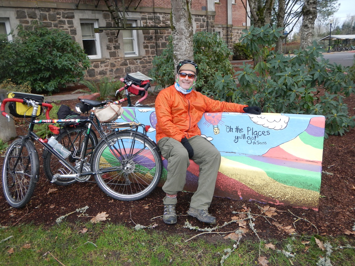 Yesterday we rode around Yamhill County for a couple of hours. We rode up Peavine Rd. – which results in a fun descent on the return. When we arrived back on the Linfield College campus, the 2014 Senior bench caught my eye and reminded me of my favorite Dr. Seuss Poem: