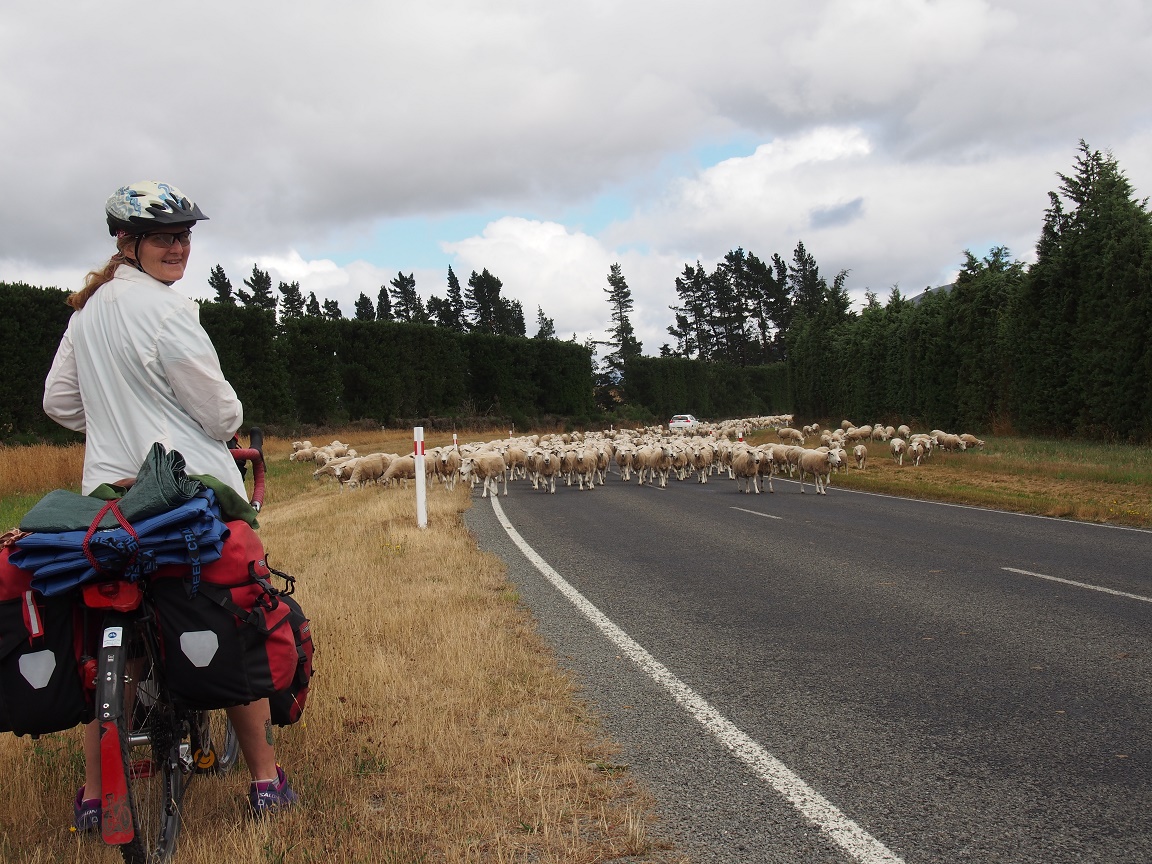 We have seen and “baaaaa’d” at our fair share of sheep while riding through New Zealand. According to James Peary (Sp?) a 92 year young sheep farmer we first met in Papatowai, enjoying an ice cream and then again in Curio Bay, also enjoying an ice cream – there used to be a lot more sheep in New Zealand – on the odds of 90 million sheep not too long ago. “Now”, James said sadly, “more farmers are turning to dairy”, as he stops for a moment to lick his ice cream, “and sheep farming is down to maybe 19 million sheep”. There are still far more sheep than people – especially on the South Island. He was an interesting man – he has sold sheep all over the world. The only place he had difficulties sending sheep to was the US – where he said he sent them to Canada and they walked across the border (he was quite the joker).